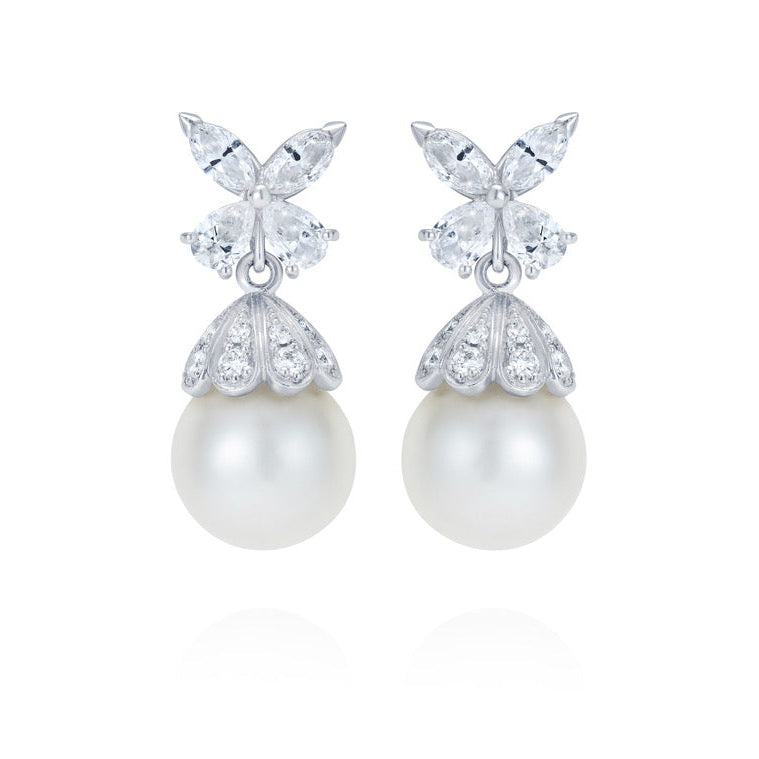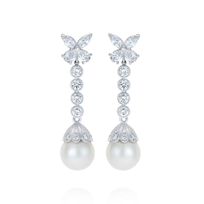 A pair of diamond and pearl detachable earrings mounted in platinum