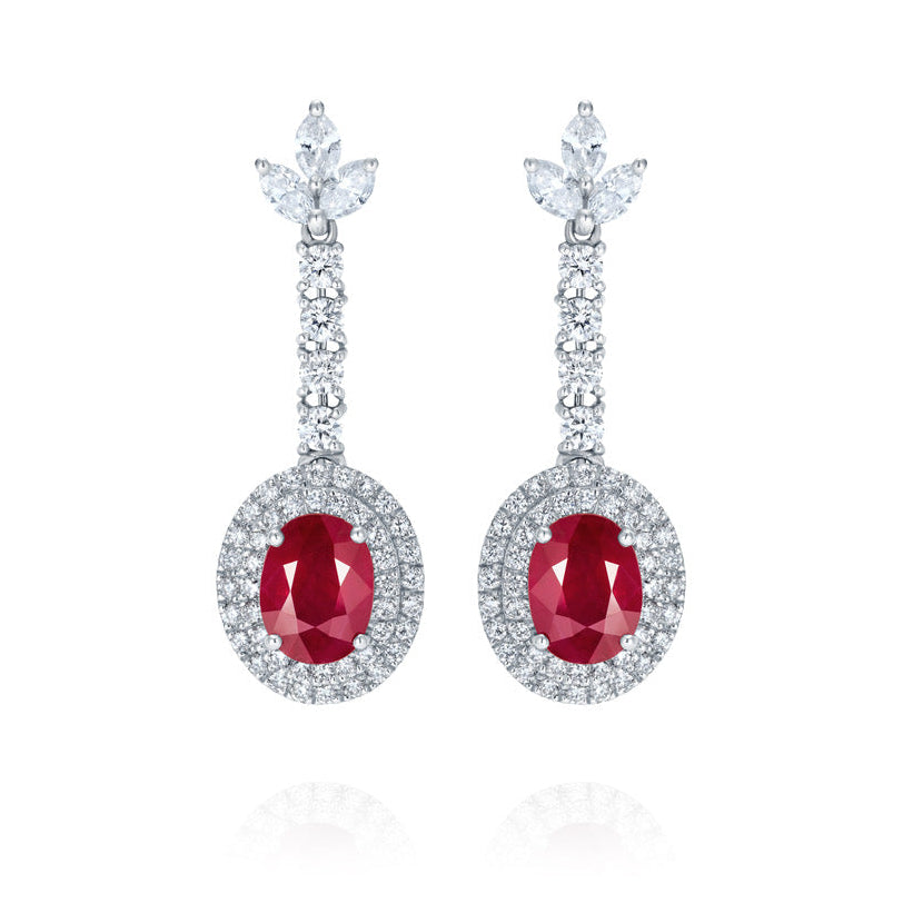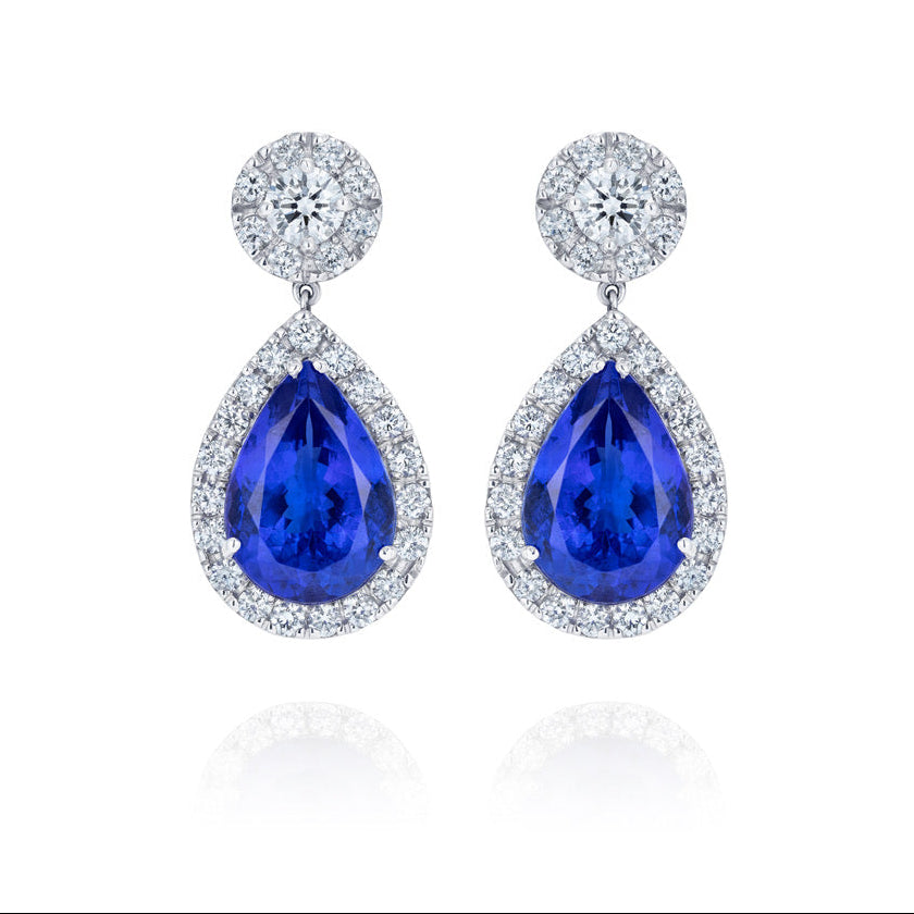 18K yellow gold earrings with diamonds and blue sapphires and aquamarines