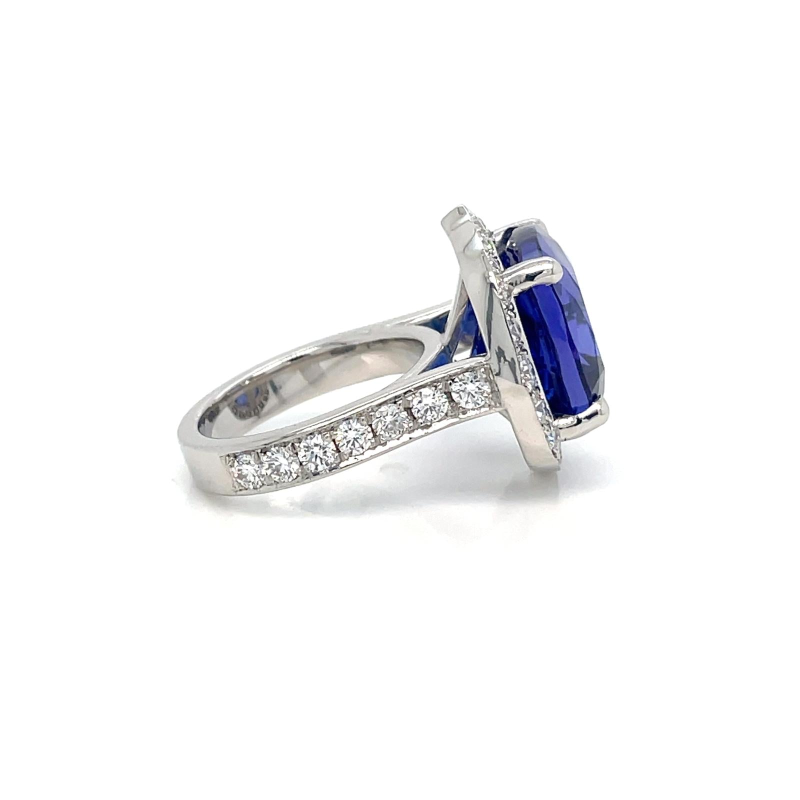 A Tanzanite and diamond ring mounted in platinum
